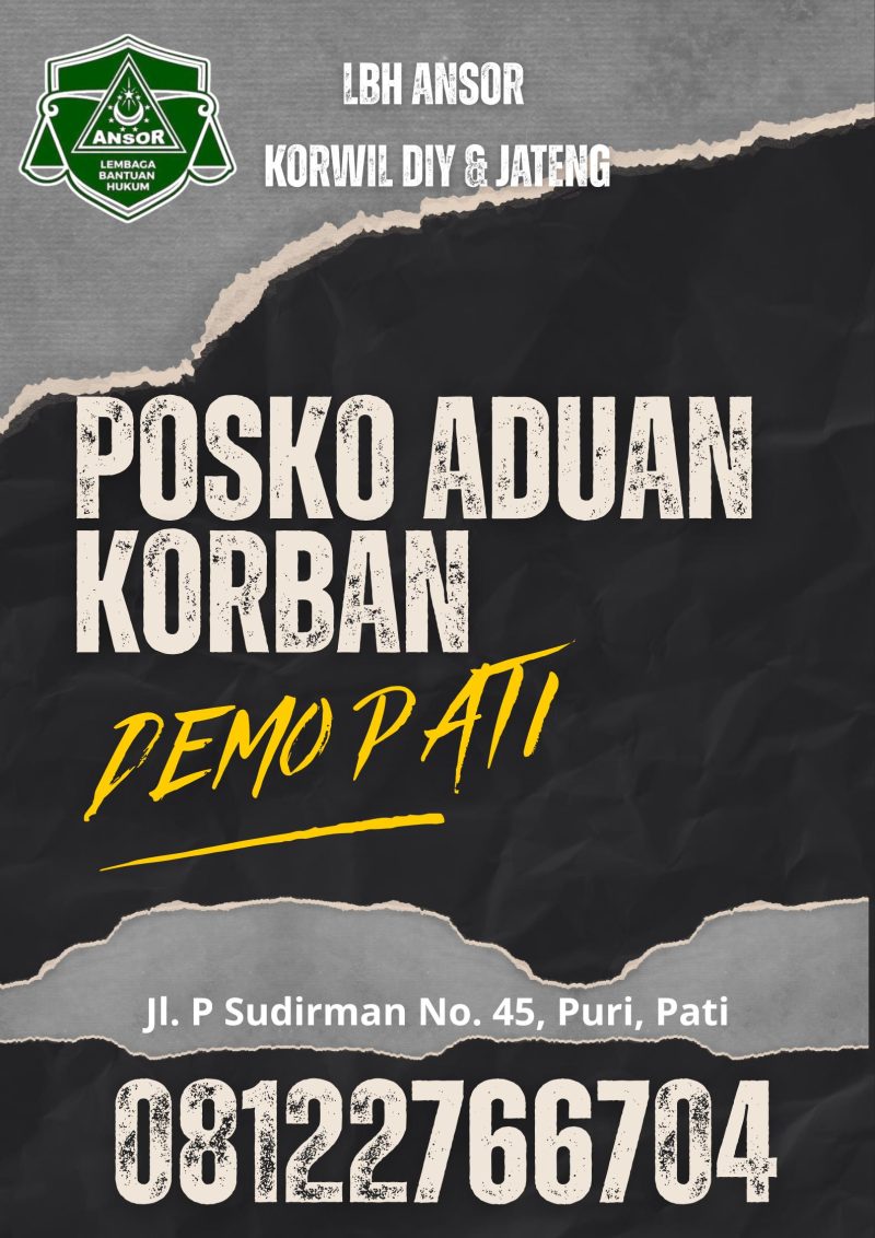 Sebagai bentuk komitmen pendampingan hukum, LBH GP Ansor membuka posko pengaduan bagi masyarakat yang menjadi korban aksi demonstrasi melalui perwakilan LBH Ansor Pati dan Koordinator Wilayah Jawa Tengah.